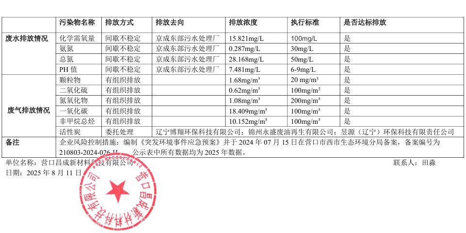 營口昌成新材料科技有限公司清潔生產(chǎn)信息公示